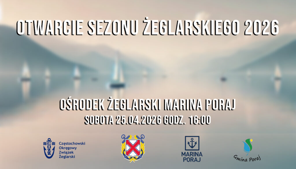 Zarząd Częstochowskiego Okręgowego Związku Żeglarskiego serdecznie zaprasza 25 kwietnia 2026r. (sobota) o godzinie 16:00 wszystkich członków klubów, żeglarzy i miłośników żeglarstwa na uroczyste podniesienie Bandery PZŻ będące równocześnie symbolem otwarcia Sezonu Żeglarskiego 2026. Uroczystość odbędzie się na terenie Ośrodka Żeglarskiego Marina Poraj. Współorganizatorami wydarzenia są Gmina Poraj, Marina Poraj oraz Yacht Klub Polski Częstochowa.